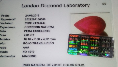 Con este reporte tendras la igamen a todo color de tu piedra, con holograma de seguridad numerado y barrado, Funda de seguridad que destruye la imagen , y el hologrma si se intenta retirar, y sistema de seguridad red point, que va firmado, numerado y ademas no se puede retirar.